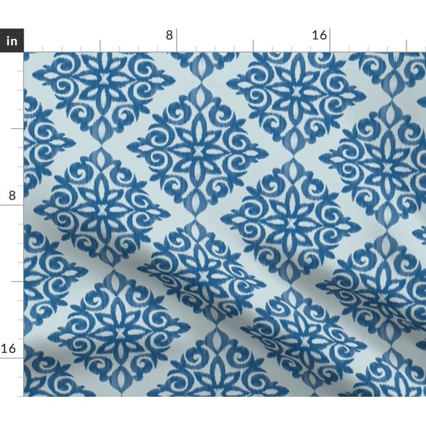 Spoonflower Fabric Modern Damask Blue Cobalt French Ikat Navy Printed On Lightweight Cotton Twill Fabric By The Yard Sewing Bottomweight Fashion Apparel Home Decor Walmart Com